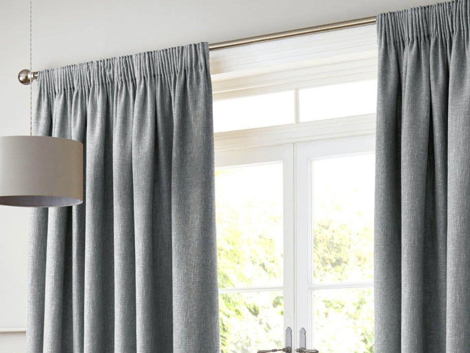 Insert the plastic hooks on either the centre or bottom row of the curtain, spaces at approximately every four pleats. The hook is inserted upside down and turned over. Finally, insert the hooks into glides along the track length. You may iron the curtain with a cool iron (fabric side up) if the care instructions allow this, otherwise simply hang as is.